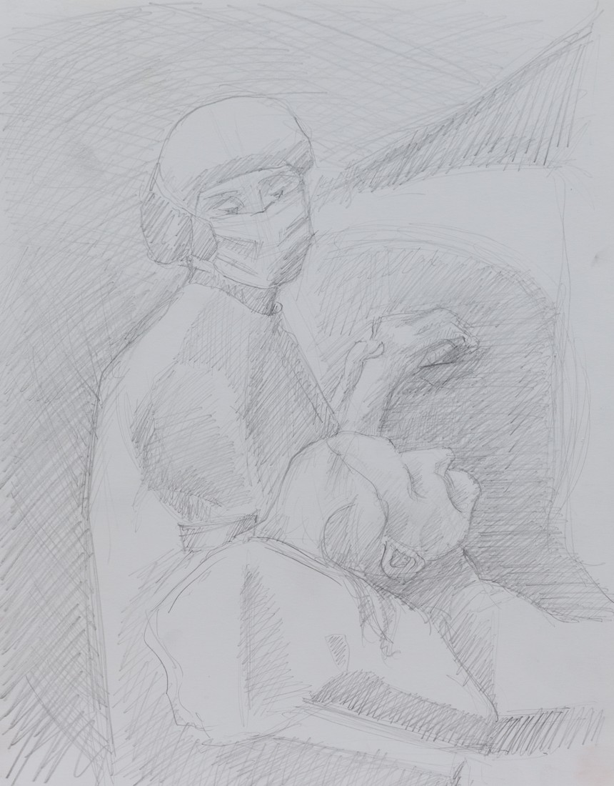 Ich hatte 1984 die Möglichkeit in einem grossen Spital im Operationssaal zu zeichnen.