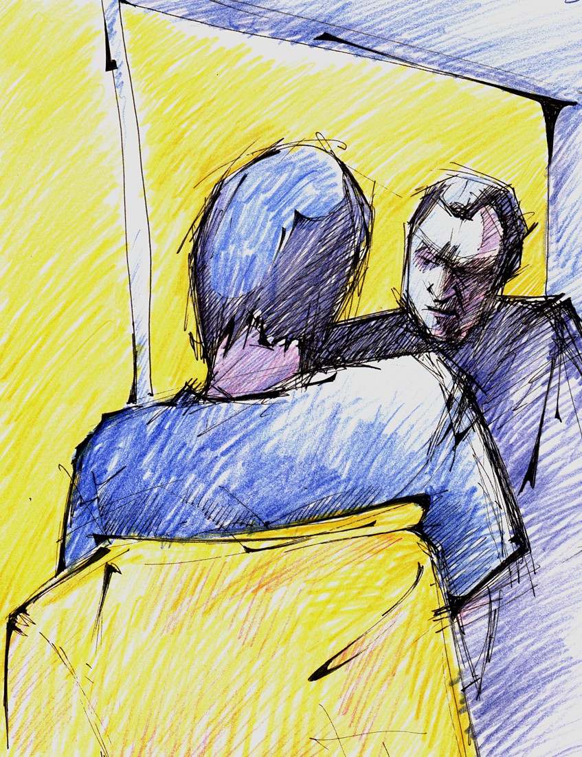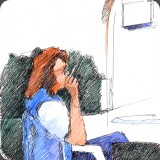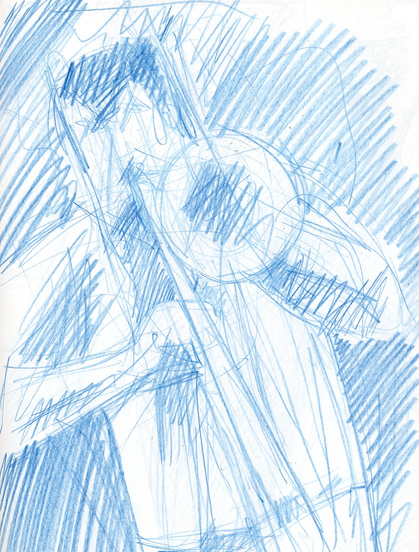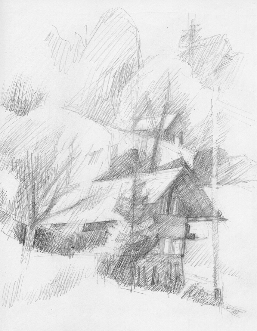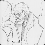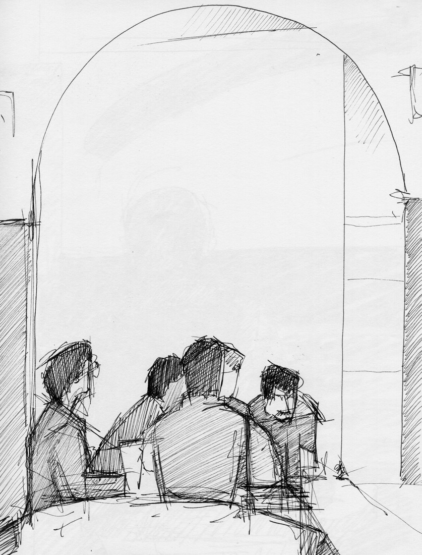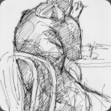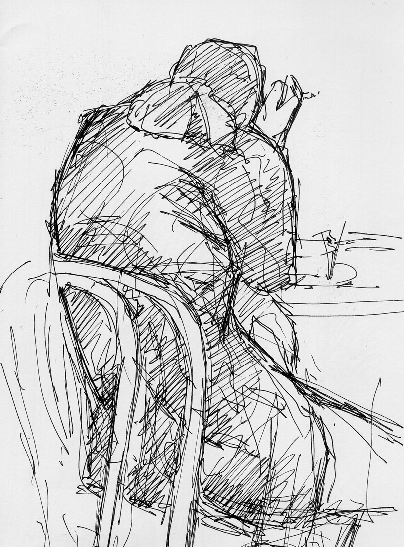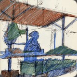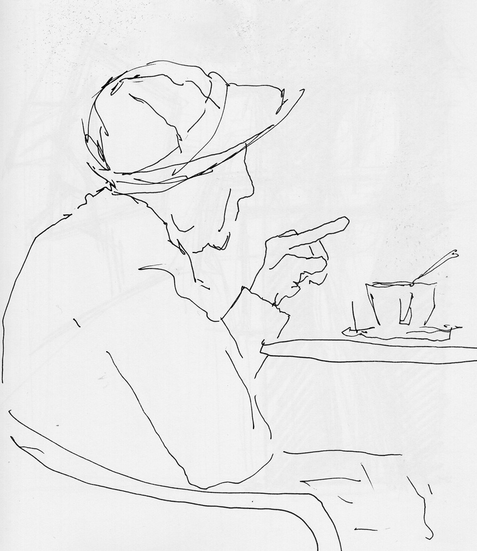 Ich hatte das Skizzenbuch immer dabei. Und vor allem unterwegs habe ich oft kurze, schnelle Skizzen von Situationen gemacht. Es ging mir zum einen um eine bestimmte Stimmung, oder um einen kompositionellen